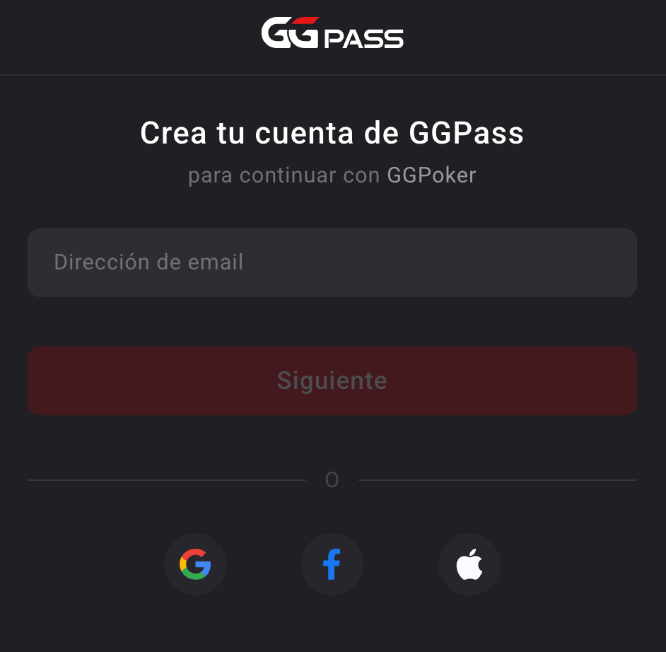 5) Ingresa a tu Cajero GGpoker e inicia sesión con tu Email y Contraseña.