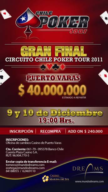 Puerto Varas es sumamente lejos y es inviable para muchos, sobretodo los jugadores de los sectores centro y norte del país. Desde luego, todos sabemos que la gracia de estos eventos es llevar gente al casino y seguro que quieren llevar gente a Puerto Varas, lo que es comprensible, pero a lo mejor no es lo mejor para los que les importa de verdad el circuito. Pero como es fin de semana largo, la dificultad de acceso no será tanta… esperemos que así se den las cosas.