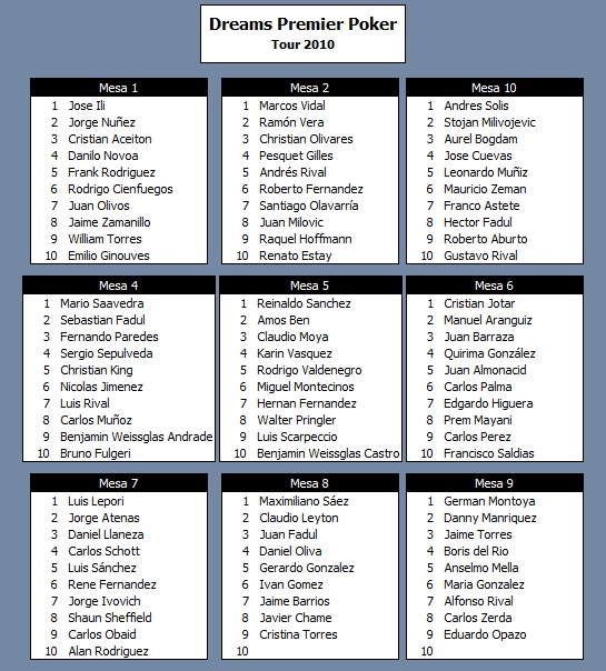 Estas son las mesas con sus jugadores correspondientes: