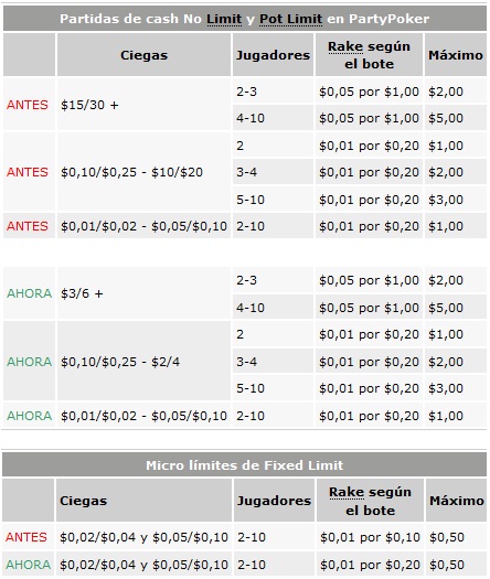 Sit and Gos: PartyPoker se encuentra en el proceso de revisar como afectará esto a los SnGs y reducirá el rake de sus límites más bajos. La fecha está por determinarse.